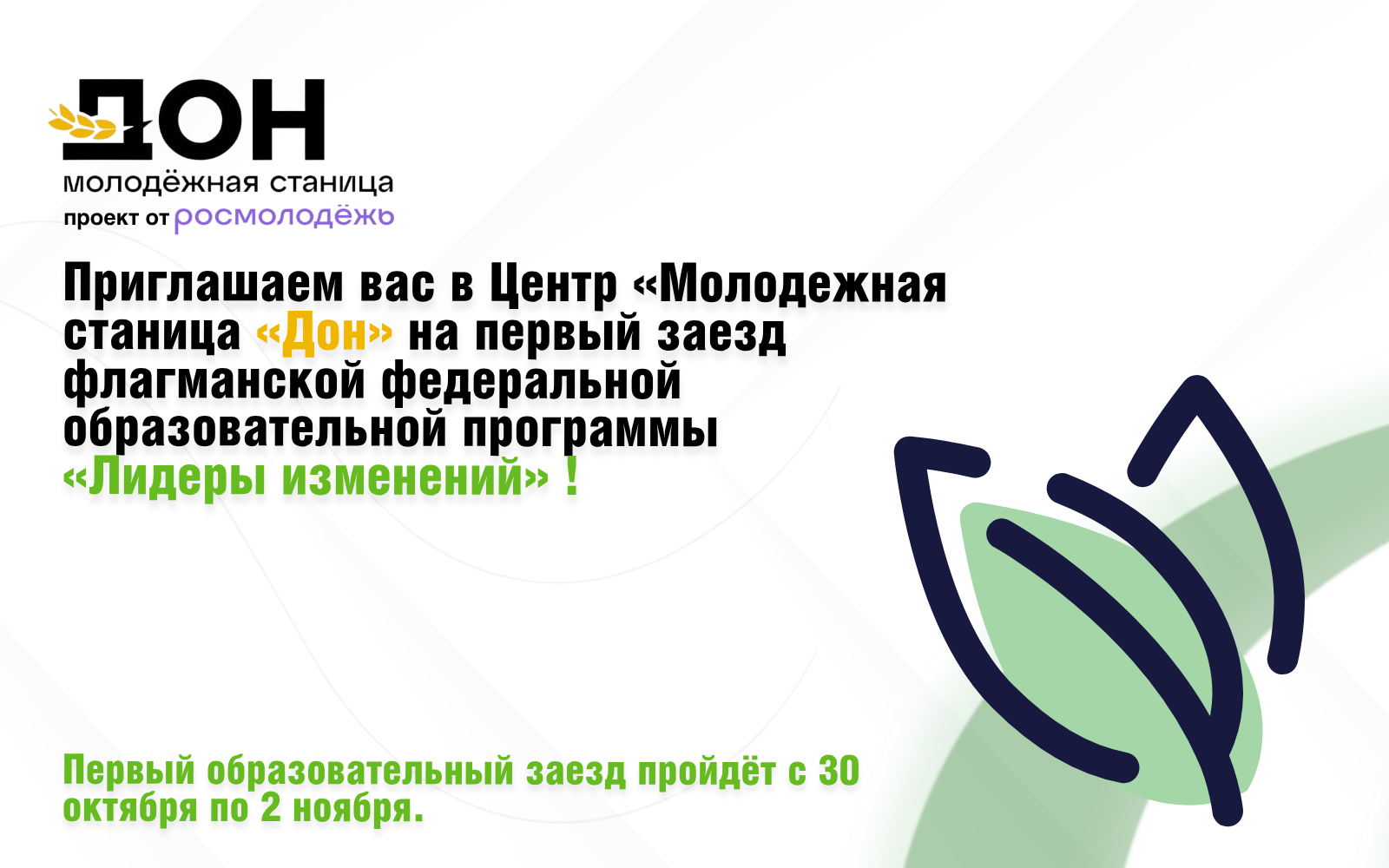 Уважаемые коллеги! ✨ Центр «Молодежная станица «Дон» приглашает на первый заезд флагманской федеральной образовательной программы «Лидеры изменений» — уникальную возможность для профессионального роста и развития ваших проектов!
