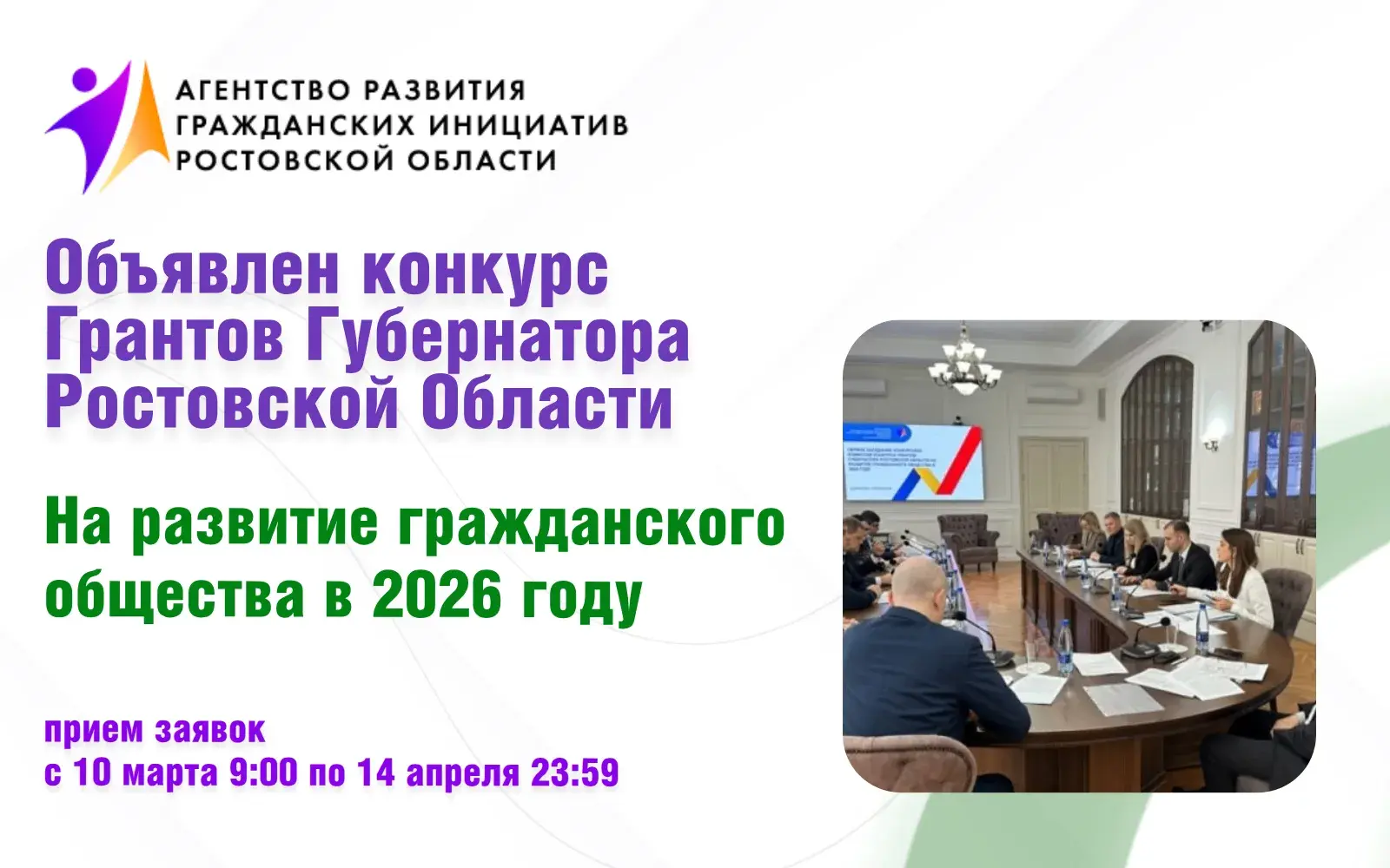 Стартует Конкурс грантов Губернатора Ростовской области на развитие гражданского общества в 2026 году!