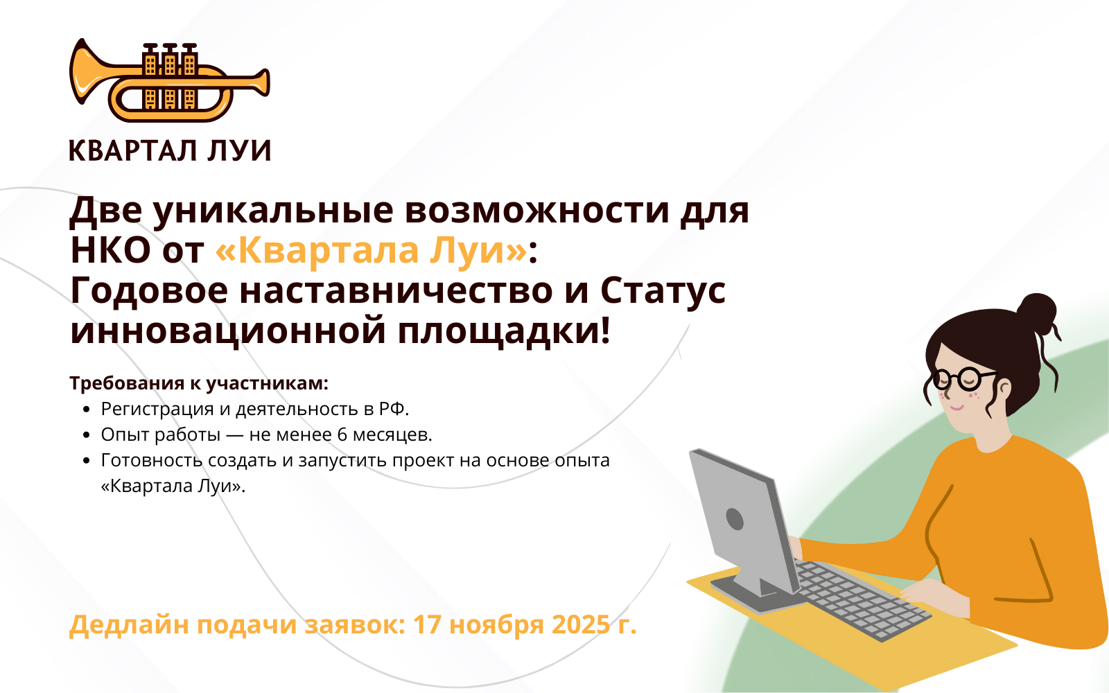 АНО «Квартал Луи» приглашает некоммерческие организации принять участие в двух значимых программах, направленных на развитие и масштабирование вашего социального проекта.