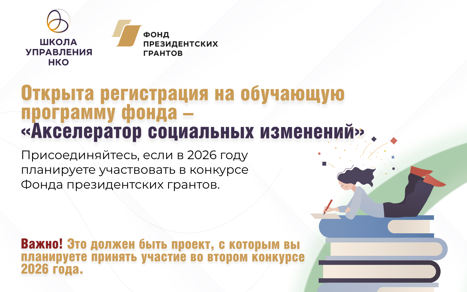 Важно: проект должен быть актуален для участия во втором конкурсе Фонда президентских грантов 2026 года.